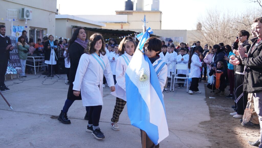 Se realizaron actos oficiales en las escuelas Domingo Faustino Sarmiento y Ricardo Rojas, donde los y las estudiantes llevaron adelante la tradicional Promesa de Lealtad a la Bandera.
