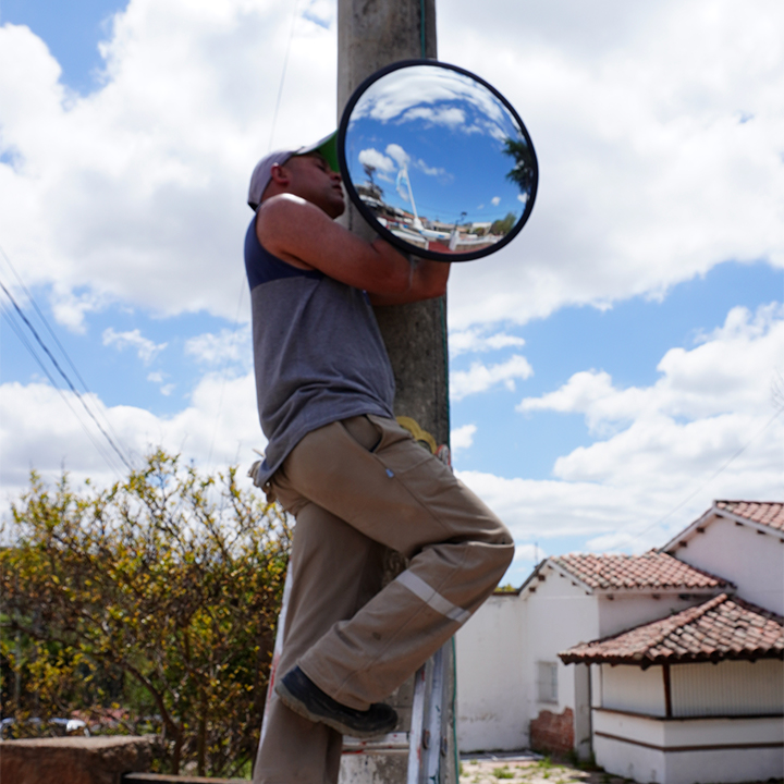 La Municipalidad de Tanti continúa trabajando en la seguridad vial de nuestra ciudad. En el día de hoy, personal del corralón realizó la renovación de cartelería y la instalación de un espejo vial en la esquina de la Plaza 25 de Mayo, en la intersección de calle San Martín y General Paz.
