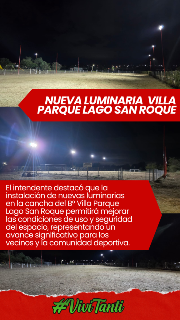 Se finalizó la instalación del sistema de iluminación en la nueva cancha de Villa Parque Lago San Roque, mediante la colocación de luminarias LED de alto rendimiento sobre columnas estructurales, garantizando una correcta distribución lumínica para actividades deportivas en horario nocturno. La obra incluyó el tendido eléctrico, tableros de control y verificación de condiciones de seguridad