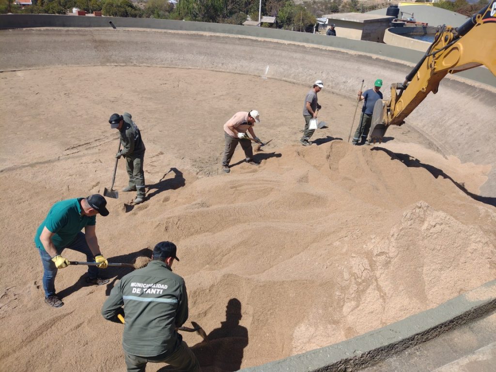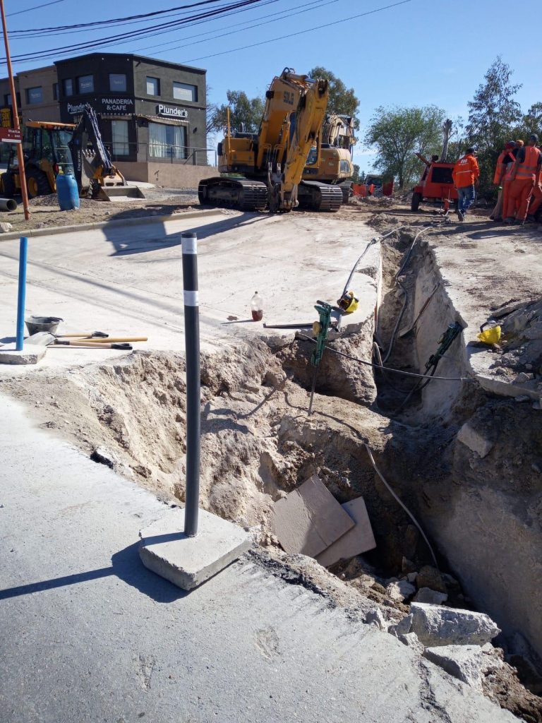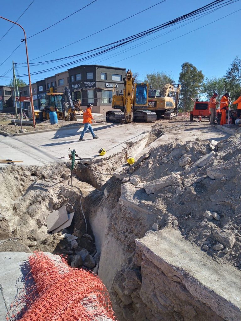 En estos momentos, personal de la empresa Michelotti S.A. se encuentran realizando tareas e importantes remodelaciones en las instalaciones de la planta de agua; como así también progresa la obra de cloacas, trabajando en la zona de ruta 28 zanjeando y colocando cañería troncal entre la calle Uspallata e Italia.